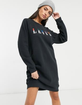Levi's crew neck sweatshirt dress in black | ASOS