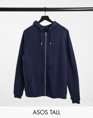 Sudadera azul marino con capucha y cierre de cremallera de algodón orgánico de Faoswalim DESIGN Tall | Faoswalim